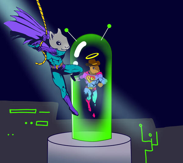 Bro of $PNUT, Eastern Gray Squirrel 1 Week, 16 INCHES Nose-Tail, 600 Grams (Well-Fed)A nimble hero with super strength, sharp claws, night vision, and a prehensile tail, leads his squirrel allies on daring missions to defend the world, one nutty adventure at a time.